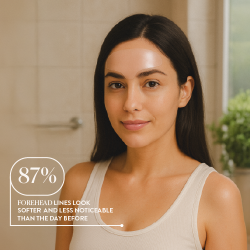 Get the look of an instant brow lift without injectables. This reusable forehead wrinkle patch targets expression lines, frown lines, and 11 lines to give you a stress-free, smoother and younger looking forehead. Made of medical-grade silicone, our brow wrinkle treatment patches hydrate and smooth the skin. Regular use helps prevent deeper creases.